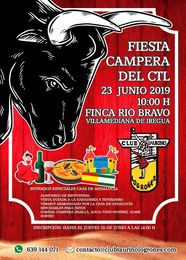 Me pongo en contacto con vosotros para invitaros a la fiesta campera que hemos organizado para el próximo domingo 23 de junio en la Finca Río Bravo de Villamediana.